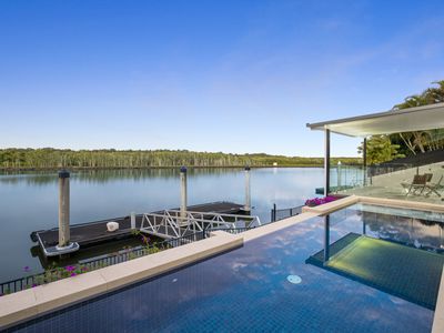 A 10/10 location...no neighbours front and rear, north-facing over the main river. A modern 2-storey home with upstairs and downstairs master bedrooms