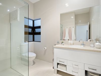 Beach House Style throughout, ultimate privacy with no neighbours at the front or back, extensively recently renovated with quality finishes throughout, a great open floorplan with soaring 3-meter ceilings providing a lot of natural light and provides low maintenance living, grand master suite with his and hers walk-in wardrobe and oversized shower with water views, four further generous sizes bathrooms all ensuited.