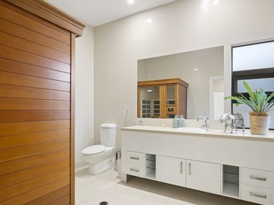 Walk through the grand double doors into your next master suite, and onto your magnificent balcony overlooking the Coomera River, with his and hers walk in wardrobes and an oversized shower with water views. The rest of your family and friends will enjoy the further four generous sized bedrooms all with separate ensuites and built in wardrobes, with the guest suite being downstairs.