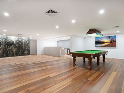 In addition, there is a championship floodlit tennis court, a sandstone pool with a water feature, a sauna and massage room, a gymnasium, a games room with four bar fridges, a caterer’s kitchen, a billiard room, an outdoor barbeque area, a climate-controlled wine cellar, and a Bose surround sound system.