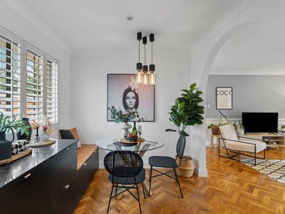 Impeccably renovated throughout, this home displays a refined contemporary classic design throughout without skimping on the finer details. The European style kitchen features black Caesarstone benchtops, modern built-in appliances inclusive of laundry flowing into an open plan dining and living. Featuring two large bedrooms and built-in mirrored wardrobes, a wonderful light bathroom with a large walk in shower, feature vanity and separate toilet. Adjustable down lights, Timber herringbone parquetry floors, French inspired cornicing, Wainscoting and highset skirting boards showcase luxury within this well-thought-out floor plan.