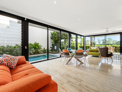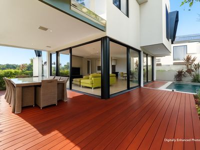Step inside to discover a spacious open-plan layout that flows effortlessly to the outdoor entertaining area, overlooking the sparkling in-ground pool and canal. The brand-new pontoon makes this home ideal for boating and water sports enthusiasts. Bi-fold stacker doors open fully to create a seamless indoor-outdoor transition, perfect for entertaining or relaxing with family.