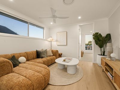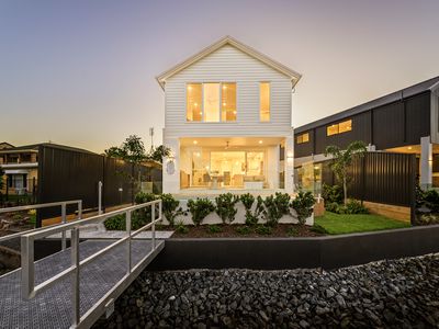 From the moment you arrive, this home commands attention. With its striking façade and modern architectural style, this freestanding waterfront home blends bold design with functional elegance. Offering four spacious bedrooms, two luxurious bathrooms plus a powder room, two separate living areas, built-in study, side-by-side double garage with additional storage and a secure gated entrance offering extra off-street parking.