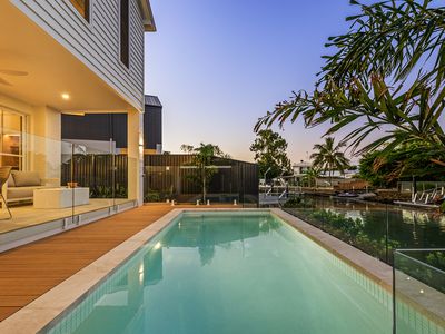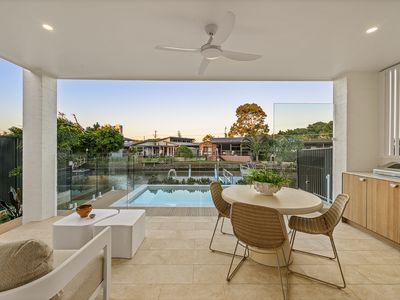 Privately situated in a serene cul-de-sac on Biggera Creek, this coveted location offers effortless access to every convenience.