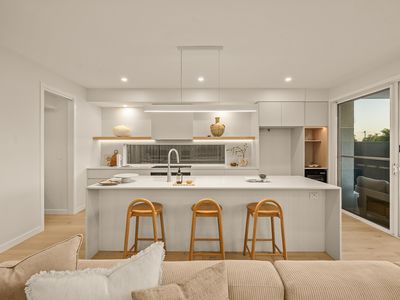 Bold elements contrasted with refined timber and stone, and complemented by luxury finishes such as engineered timber flooring and 100% wool carpet, create a perfect balance of contemporary design and relaxed coastal luxury.