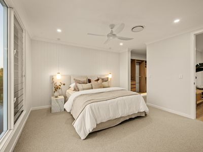 while the generous master suite offers water views, a spacious ensuite, and a true retreat-like feel.