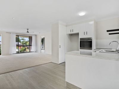 Step inside to open-plan living areas designed for everyday relaxation and entertaining. Natural light pours in from large windows, ensuring welcoming spaces. The living rooms and both bedrooms feature brand new carpets for enhanced comfort. The recently refreshed kitchen includes modern cabinetry, high-quality appliances, and plenty of bench space, while timber-inspired flooring in the kitchen and dining area complements the freshly painted interiors.