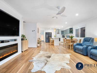 Parking is amply provided with a 2-car garage, including storage, and additional space for 2+ vehicles in the driveway. Indoors, comfort is assured year-round with ducted, zoned air conditioning, while hybrid timber floors add a touch of elegance underfoot.