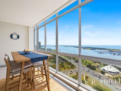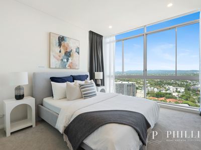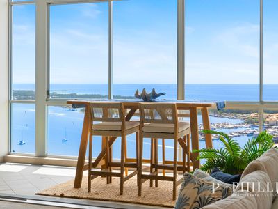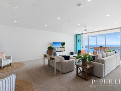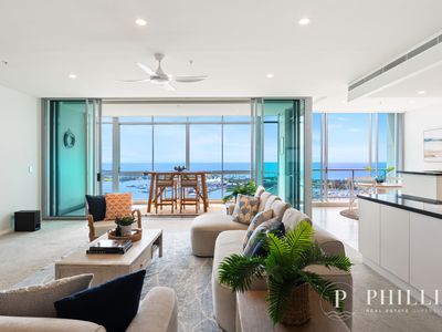 Sensational 31st-floor position within the established “Shores”, this spacious 223sqm sub-penthouse (including balconies) delivers light-filled luxury living with sweeping panoramas across the Southport Yacht Club marina and beyond. From the sparkling Pacific Ocean and Broadwater to the hinterland ranges and glittering city skyline, this residence offers a front-row seat to one of Queensland’s most captivating outlooks.