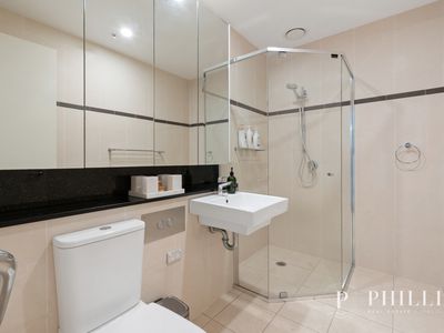 Recently refreshed, the apartment exudes contemporary elegance. A granite kitchen equipped with Miele appliances and gas cooking anchors the open-plan living and dining spaces, which flow seamlessly to a fully enclosed all-weather entertaining terrace—ideal for year-round enjoyment.