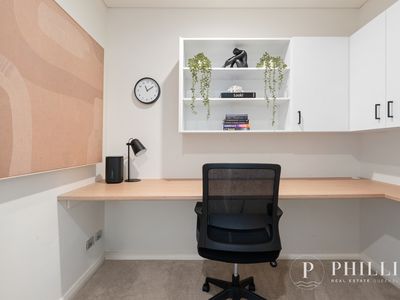 Bedrooms 2 and 3 also enjoy beautiful hinterland views, with Bedroom 3 also offering a private balcony. A separate study near the entry provides a quiet and private workspace.
