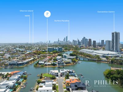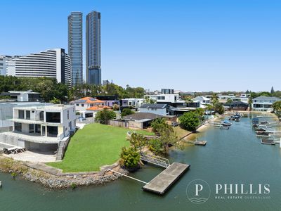 这里在著名的 Broadbeach waters 中心 位置,周围环绕着豪华住宅和宽阔、宁静的水道, 是设计建造水边豪宅的理想地点,有私家码头,可以从后院直接乘船前往布罗德水域和周边岛屿。