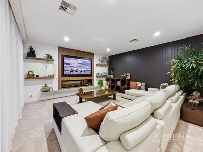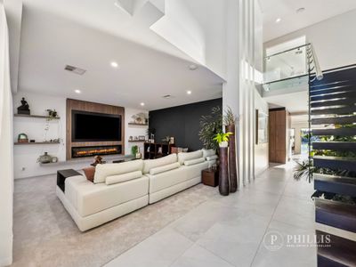 Inside, relaxation is redefined. Enjoy movie nights in the dedicated media room featuring an Epson projector and surround sound, or unwind in the sophisticated lounge with elegant feature lighting and serene water views.