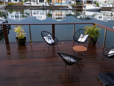 Expansive 15x3m timber deck extending over the water