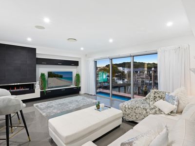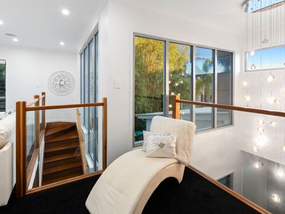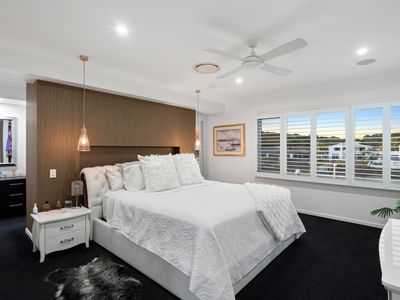 Upstairs, the luxurious master suite offers uninterrupted water views, a walk-in robe, and a spa-inspired ensuite with a freestanding bath. Three further bedrooms, a family bathroom, and an additional living area complete the upper level - providing space and privacy for the whole family.