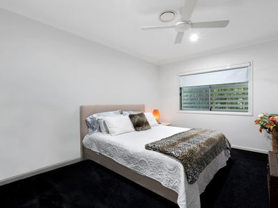 Three additional bedrooms with built-in robes, plush carpets, ceiling fans, and ducted air