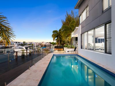 Welcome to 41 Cova Boulevard, Hope Island - a north-facing waterfront sanctuary that perfectly blends luxury, lifestyle, and effortless indoor-outdoor living.