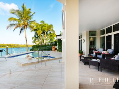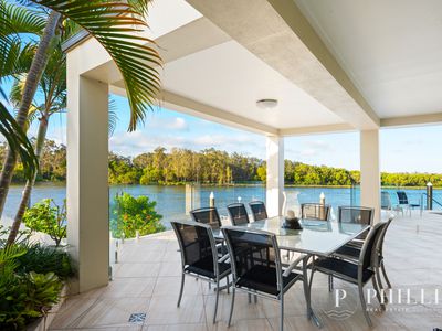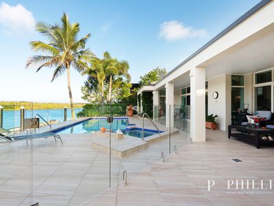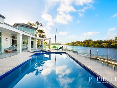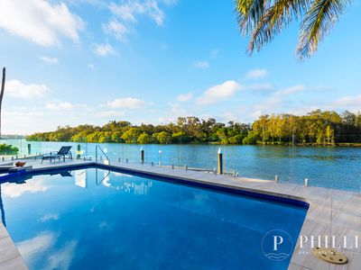 • 4 Ensuite Bedrooms: The master bedroom overlooks the Coomera River and the pool area.