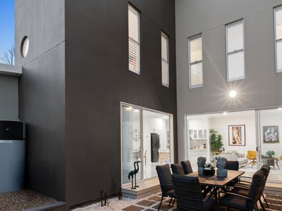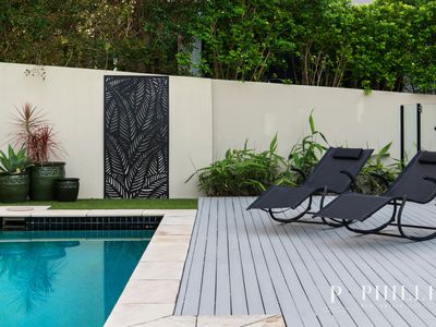- Three separate designated living areas downstairs, plus the entertaining deck.