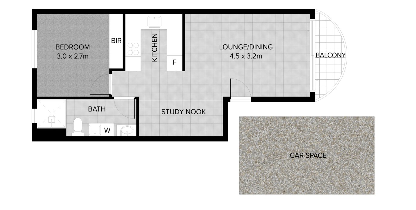 One bedroom, one bathroom apartment with secure parking for one car in basement and balcony overlooking private pool area. Brand new split system aircon installed in bedroom.