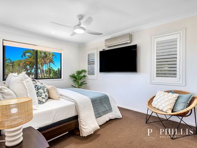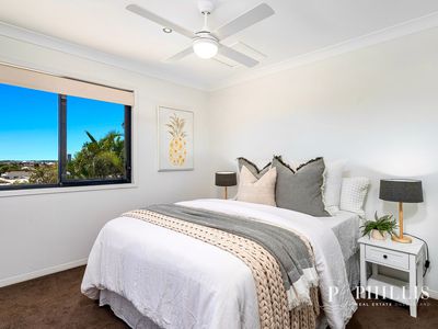 Privately positioned at the end of a boutique complex of just four, this elevated three-level townhouse captures extensive views and exceptional privacy, only moments from the Broadwater.