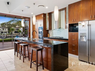 The wide canal frontage provides fast boating access (under five minutes) to the main river, with bridge-free access to the sea, and direct access to Sanctuary Cove’s marinas and waterfront dining.