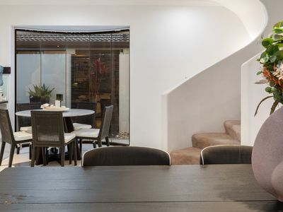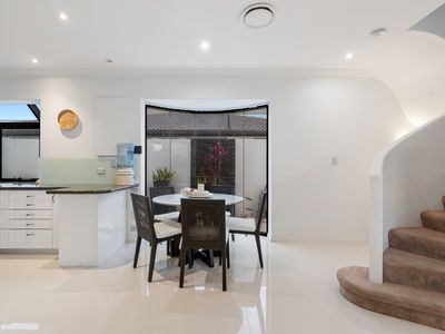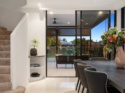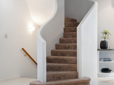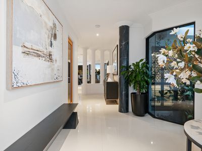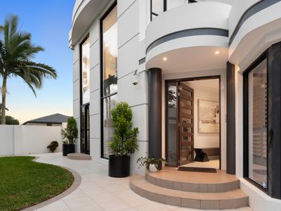 Defined by its distinctive MIMO (Miami Modern) Art Deco inspired design, and believed to be the only residence of its kind in Sorrento, the home draws subtle influence from iconic Miami waterfront architecture. Curved forms, statement columns, detailed cornicing, and a showpiece staircase create a residence that feels both timeless and architecturally unique.