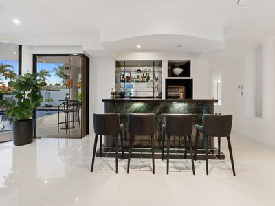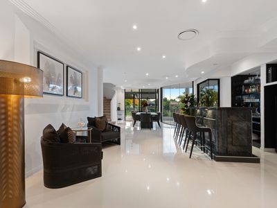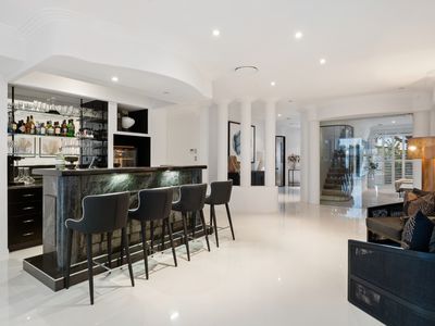 • Multiple indoor and outdoor entertaining zones including a statement marble bar, pizza oven, and waterfront alfresco deck