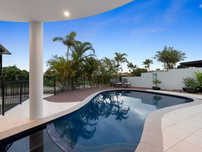 Outdoors, the lifestyle continues with a saltwater pool and spa, tropical landscaping, and your very own sandy beach, jetty, boat ramp, and multipurpose room, offering direct access to the main river and a lifestyle few properties can match.