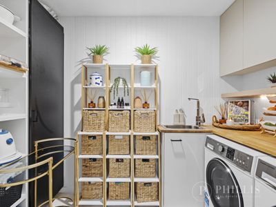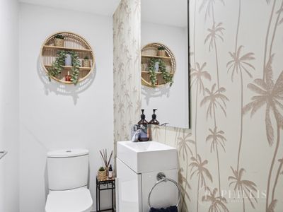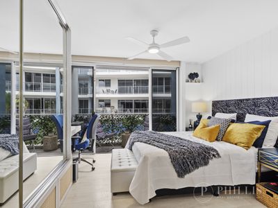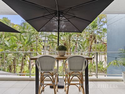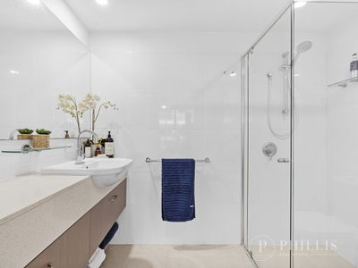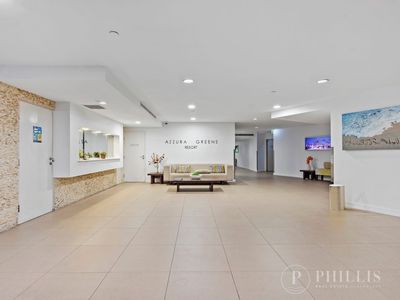 Boasting two generous bedrooms, each with its own en-suite and private balcony, plus a guest powder room, the layout is both practical and impressive. The expansive open-plan living and dining area flows to a large entertainer’s balcony complete with built-in cabinetry and bar fridge — perfect for relaxed coastal living.