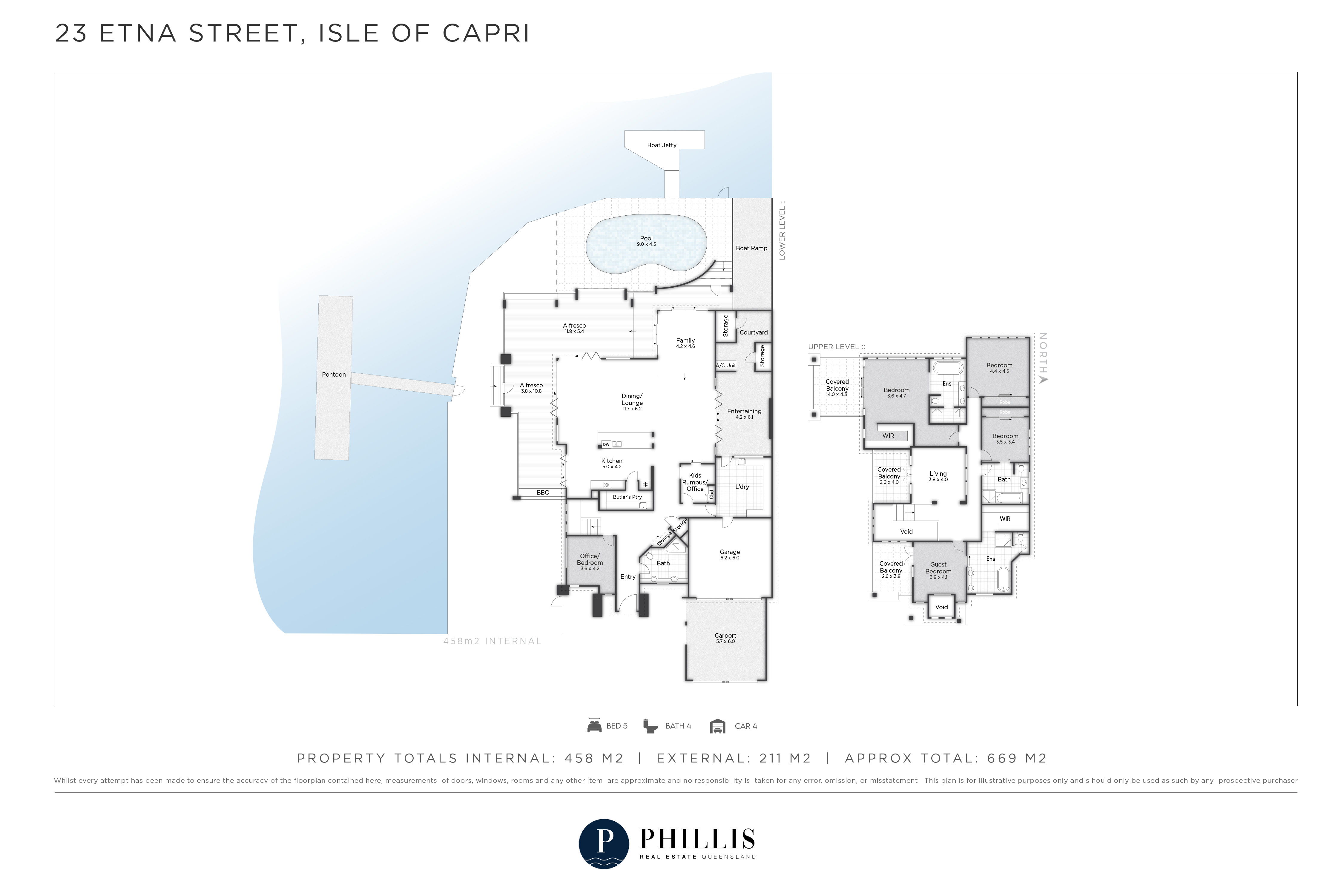 Positioned on a prime 895sqm corner block in the prestigious Isle of Capri, 23 Etna Street is a true Main River masterpiece offering uninterrupted water views. This magnificent residence features five generously scaled bedrooms and four luxurious bathrooms, providing abundant space for family and guests.