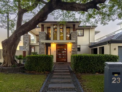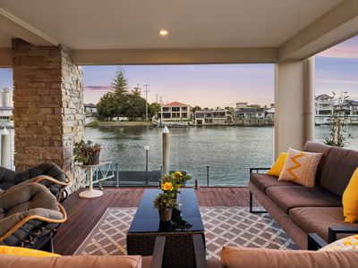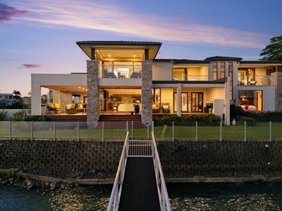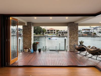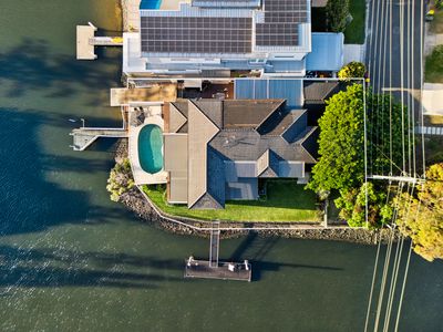 Positioned on a prime 895sqm corner block in the prestigious Isle of Capri, 23 Etna Street is a true Main River masterpiece offering uninterrupted water views. This magnificent residence features five generously scaled bedrooms and four luxurious bathrooms, providing abundant space for family and guests.