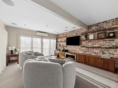 As you walk up to the home, you're drawn straight away to the grande facade, and welcomed into the home by an oversized single pivot door. inside, you experience the 5m high void, natural light, and beautiful oak flooring. You also notice the stunning reclaimed Victorian stone feature wall.