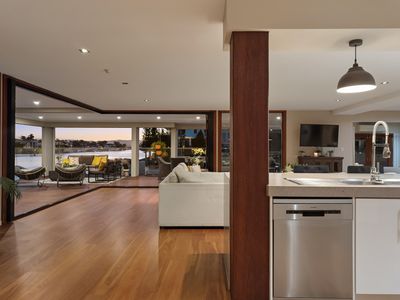 The main living/kitchen/dining/entertaining is an expansive open-plan area, the views instantly take your breath away. Coupled with zero edge trifold doors to seamlessly integrate the indoor/outdoor flow, you feel at one with the main river and endless views. Enjoy entertaining, relaxing, meals & family time all from this central hub of the home.