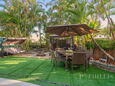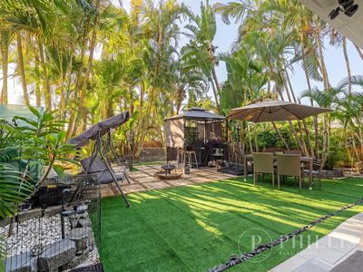 Two covered BBQ areas set amongst lush tropical gardens to entertain with family and friends.