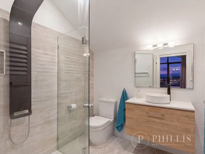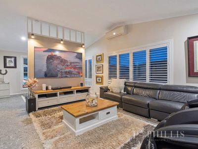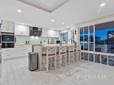At the heart of the home, the gourmet kitchen steals the spotlight—complete with a butler’s pantry, stunning 40mm stone island with waterfall edges, and premium Fisher & Paykel appliances. Designed for effortless entertaining, the open-plan living and dining zones spill out to a resort-style outdoor haven featuring a heated pool, LED-lit hardwood deck, solar shower, custom patio, and immersive BOSE surround sound.