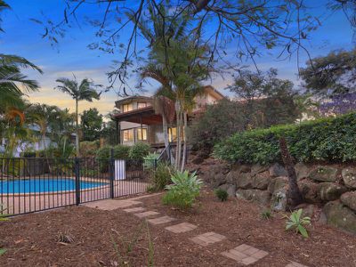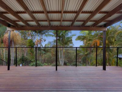The outdoor covered alfresco timber deck overlooks the fully legal inground swimming pool and the Gold Coast panorama. This block of land is huge 1641 m2 almost 3 times the size of a standard Gold Coast block, and extends from the road down to the bottom of the landholding which is like a natural bush area for wildlife