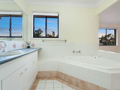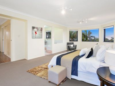 The master bedroom is huge and has clothing good storage area. It also has a large private spa, shower and toilet within the bathroom. The views from the main bedroom also pick up all of the coastal panorama.Also upstairs is a large family room and three other bedrooms.