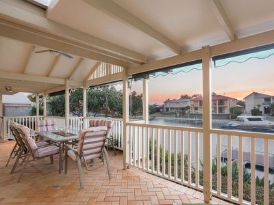 Positioned at the end of a quiet cul-de-sac on a fan shaped block giving you wide water frontage. Watch the sunsets from the large covered terrace/patio with wide water frontage over your sandy beach.
