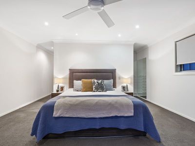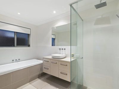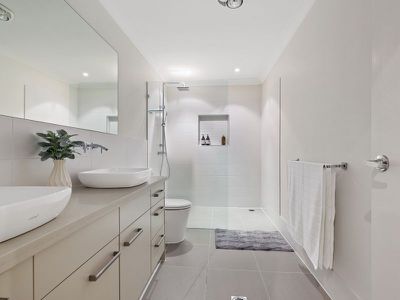- Master bedroom- a private oasis leading onto your own balcony and lawns, his and hers walk in robe with built in cabinetry for minimalistic living, huge ensuite with rain water shower and set back from the master bedroom for privacy, ceiling fans,
