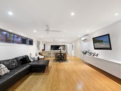 Entertain the family or friends in the multiple living areas, choose from the timber outdoor patio with ceiling fans that leads out onto the lawn and low maintenance garden, or choose the living room, the high quality kitchen with stone bench tops and high quality appliances, or choose the sunken lounge as a place to retreat and watch a movie.