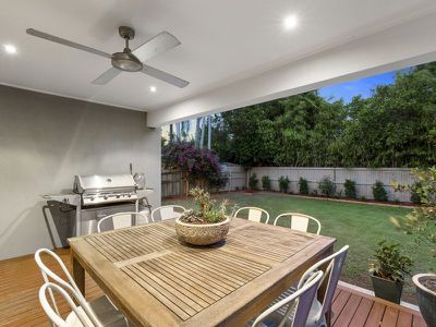 - Large timber deck bbq area with ceiling fans leading out to the large lawn area