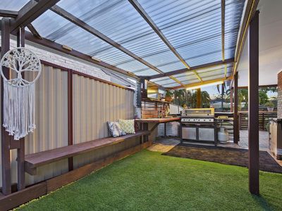 Situated on a 751m2 corner block, offering families space and options. From the undercover area that wraps around the house, off street parking for tradie trailer, motor home or caravan. Mancave/shed with mezzanine floor and toilet fully powered.