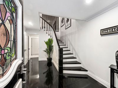 -Stunning black polyurethane coated floorboards in the entrance way and throughout the upstairs living area.