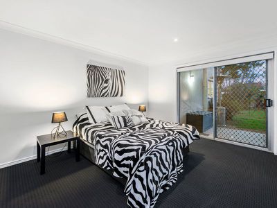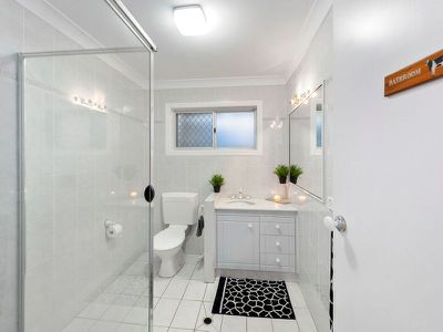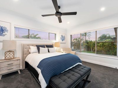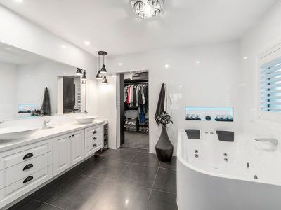 -Master suite capturing breath taking Broadwater views with luxurious fully tiled ensuite which includes a two-person contour spa bath, a monsoon shower head and double basins sitting upon a Caesar stone vanity… Then walk through to your large walk in wardrobe fitted out to display all your designer wears.