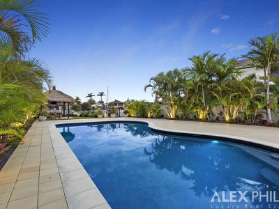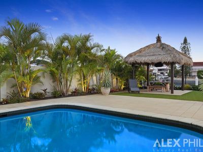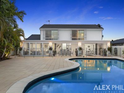 Situated on the corner of Daru and Salamau Street Runaway Bay, you can immediately sense the magnificent street presence of this property, but you cant see how beautiful the pool and garden are facing the waterfront .