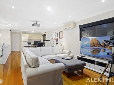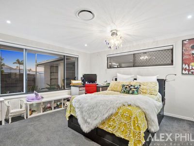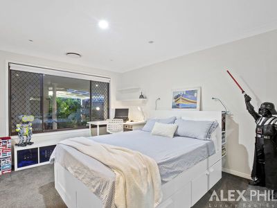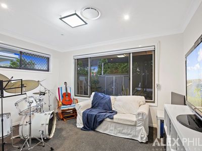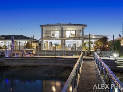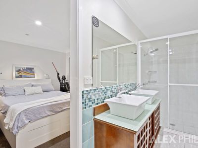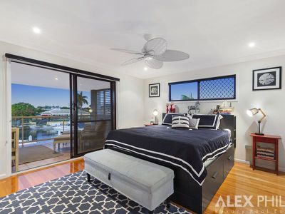 A Huge master bedroom retreat, light filled with extended views down the wide canal, a parents retreat balcony, seperate kitchen and lounge room with an electric drop down projector that creates a cinema, attic that could be an art studio, upstairs bedroom/office or second walk in robe,