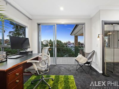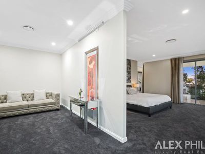 - The Master bedroom has the WOW factor and is like a hotel penthouse, a huge bedroom with 2 wrap around balconies that have park and water views, a massive his and hers walk in robe, a stylish bathroom with spa bath, a parents lounge off the master bedroom,