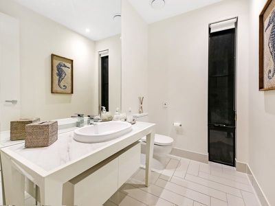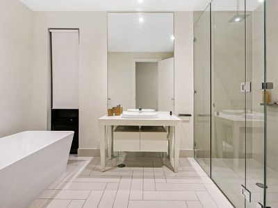 * Tiling in the living areas and throughout the bathroom creates a low maintenance and modern feel