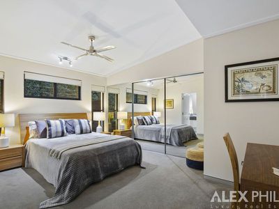 Accessed by a small staircase the master suite offers an expanded floor area which includes a huge dressing room and luxurious ensuite bathroom offering an oversized personal spa. The master suite has a private balcony with elevated Camera River views. I doubt that there is a better master suite in any comparable property for sale on the Gold Coast.